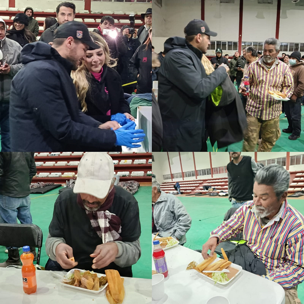 Acompañado también por la presidente del DIF Matamoros Anita de Granados, ambos se dieron a la tarea de convivir con las personas que se encontraban dentro del albergue, entregándoles chamarras café pan y platillo de tamales.