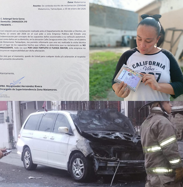 La señora Solangel Soria Garza, quien fue la más afectada por el hecho comenta que la Comisión Federal de Electricidad se ha deslindado de su responsabilidad, pues dicen que fue un “caso fortuito o fuerza mayor”.