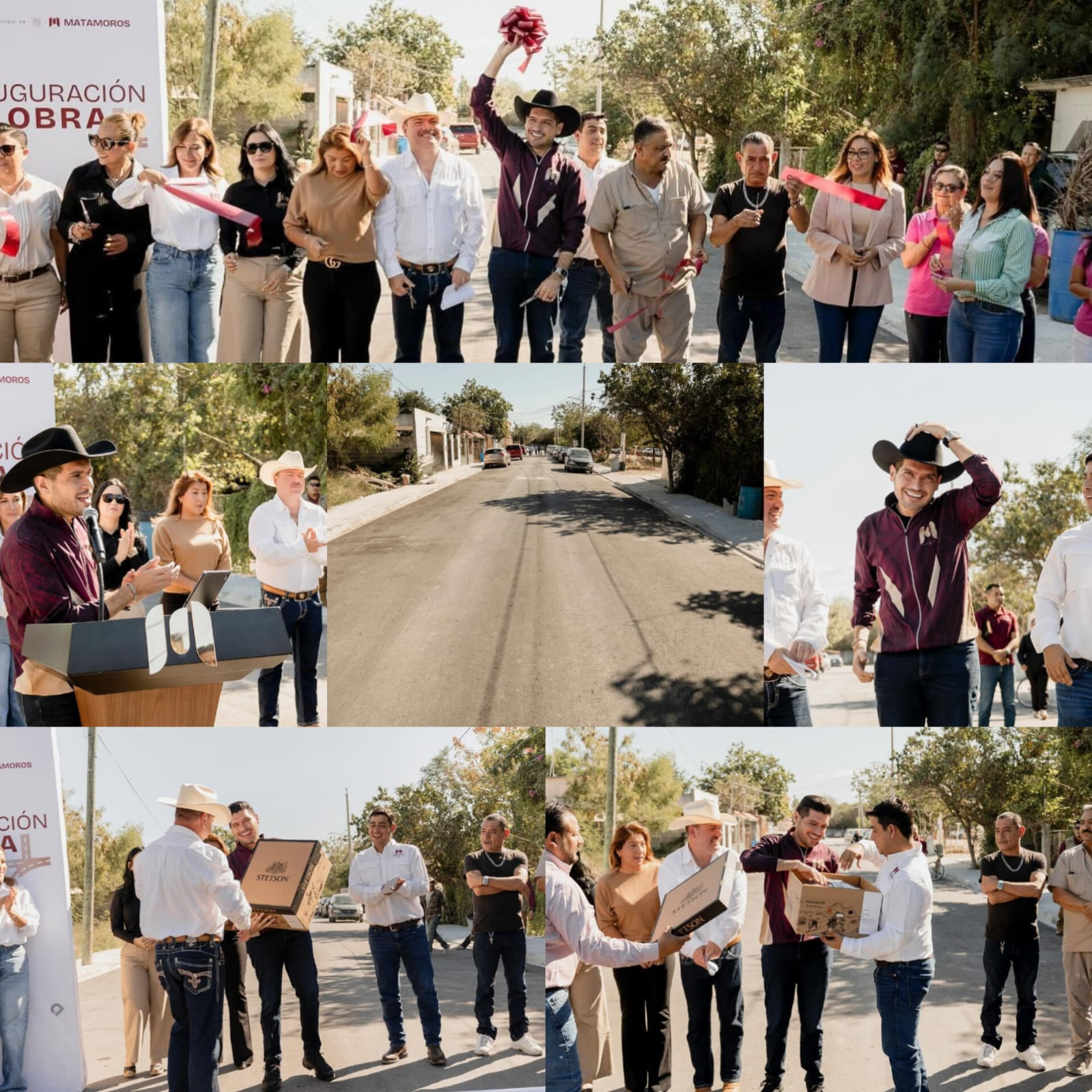 H. Matamoros, Tamaulipas.– El alcalde Beto Granados inauguró la pavimentación asfáltica de la calle Las Brisas, entre las calles 2 de Agosto y Bandera Nacional, en la colonia San Pablo, obra realizada con recursos del Fondo de Aportaciones para la Infraestructura Social Municipal (FAISMUN) 2025. Los trabajos incluyeron la aplicación de 1,268 metros cuadrados de carpeta asfáltica con base de sulfato de calcio, 318 metros lineales de guarniciones, 436 metros cuadrados de banqueta de concreto, nivelación de pozos de visita, tomas y descargas domiciliarias, así como señalamiento vial, beneficiando directamente a más de 1,500 habitantes.