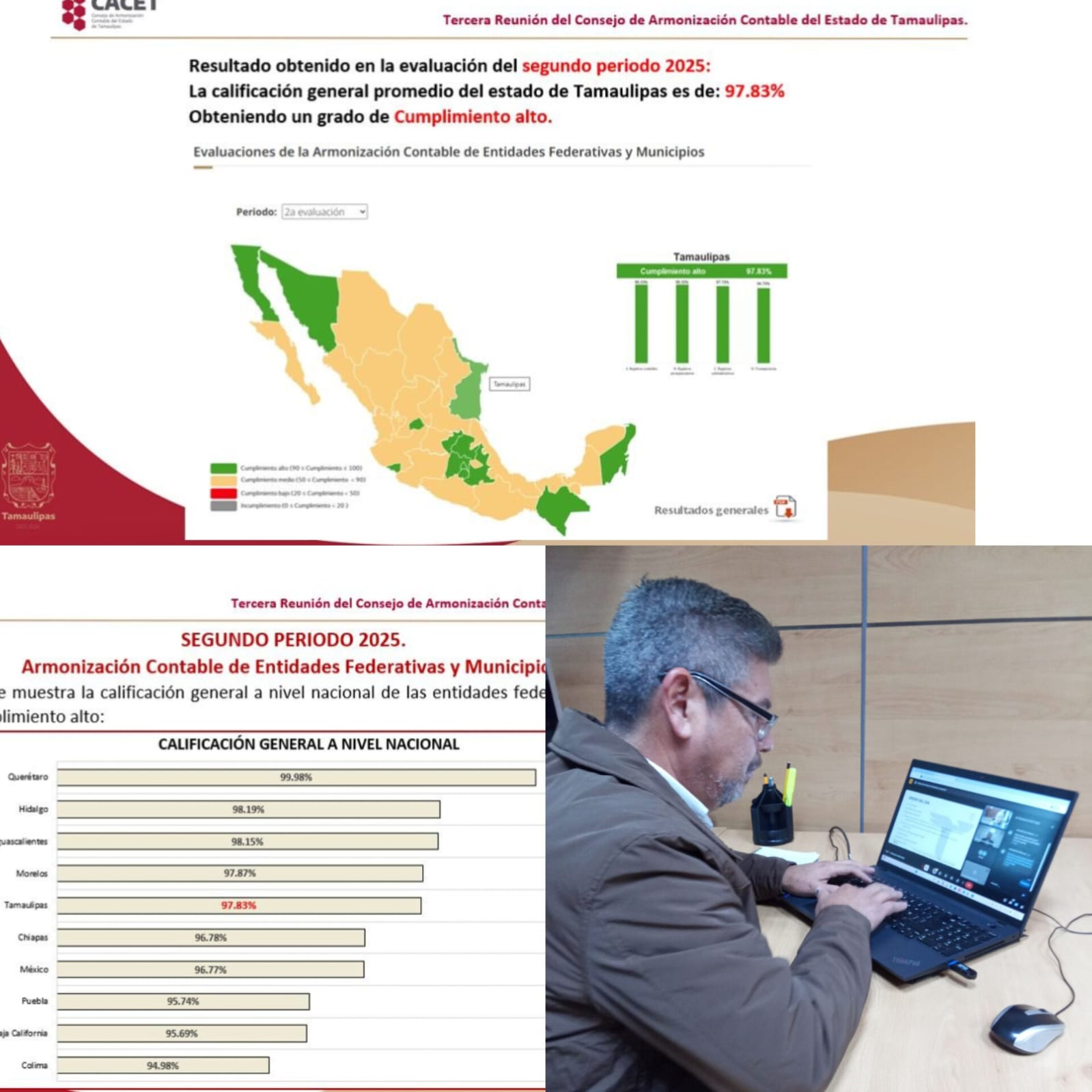Durante la sesión se informó que Tamaulipas alcanzó un resultado nacional de 97.83%, lo que ubica al estado en un nivel de cumplimiento alto y dentro de los primeros cinco lugares del país. Este logro refleja el compromiso de las instituciones públicas tamaulipecas con la correcta aplicación de las normas contables y la transparencia en el manejo de los recursos.