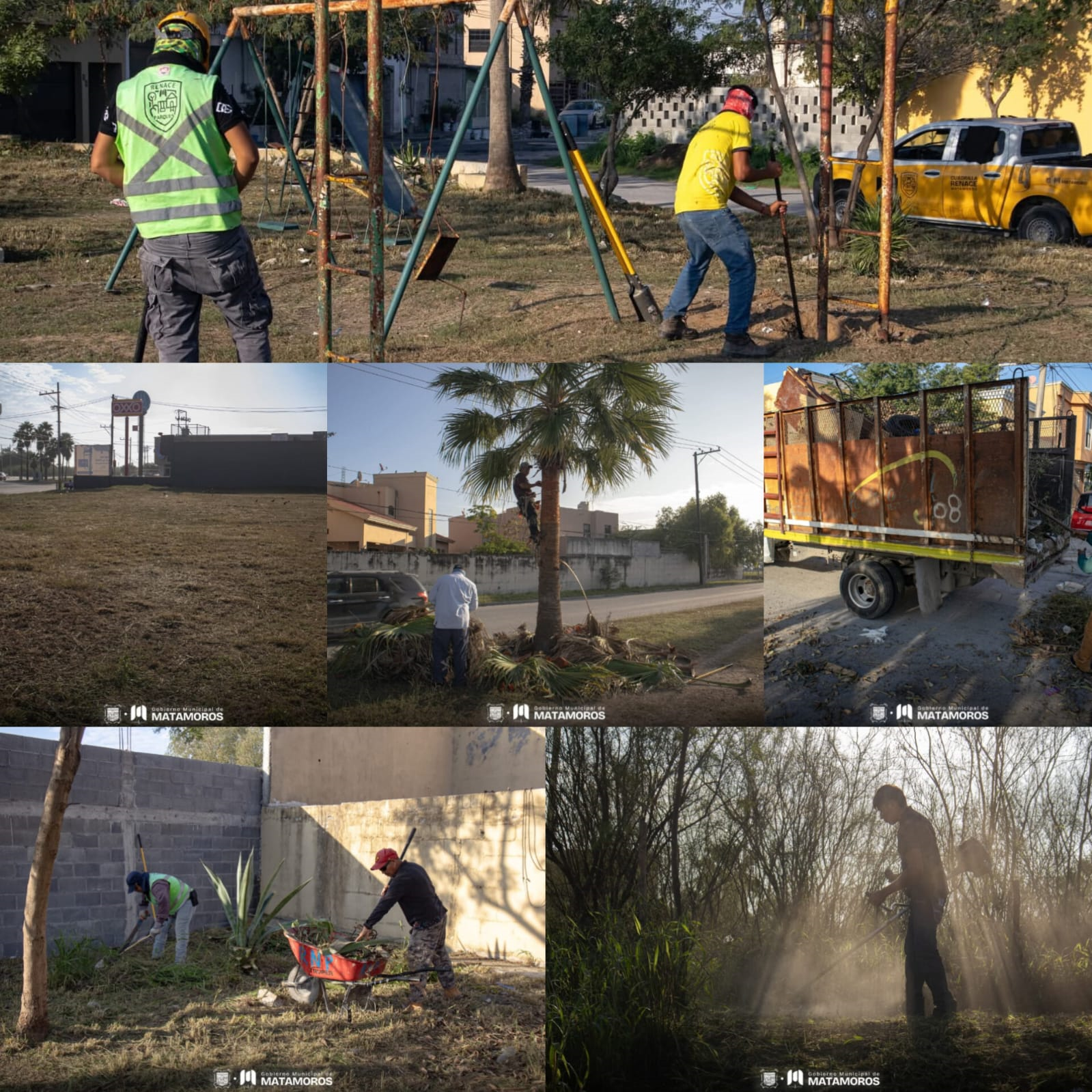 H. Matamoros, Tamaulipas.- Bajo el liderazgo del alcalde Beto Granados, los trabajos de rehabilitación y mantenimiento de las áreas verdes de Matamoros continúan avanzando de manera permanente. En esta ocasión, las cuadrillas municipales se encuentran realizando labores en el Fraccionamiento Praderas, con el objetivo de mejorar la imagen urbana y ofrecer espacios dignos para la convivencia familiar.
