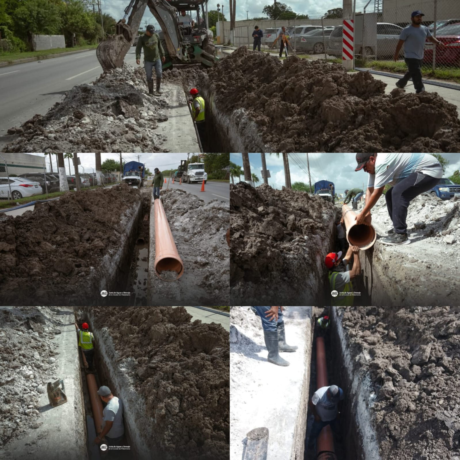 H. Matamoros, Tamaulipas.- El alcalde Beto Granados supervisó los avances de la obra de rehabilitación de la línea sanitaria en la carretera Sendero Nacional, donde se instala tubería de 12 pulgadas para mejorar el servicio y prevenir futuros colapsos.