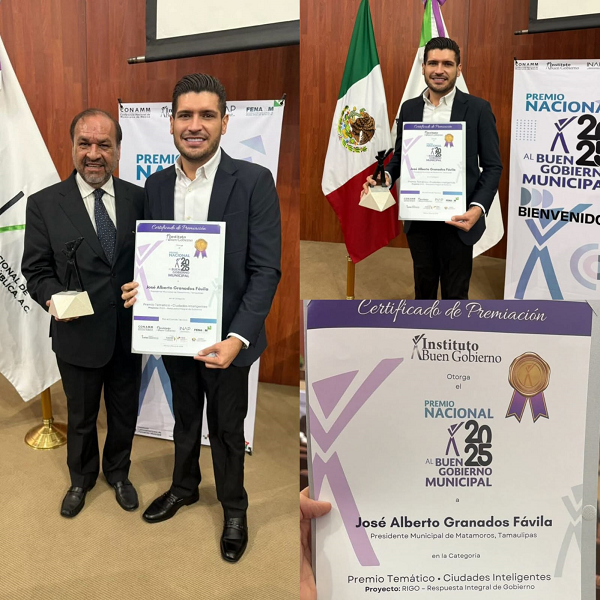 El reconocimiento fue entregado por la Conferencia Nacional de Municipios de México, en la ceremonia desarrollada en la sede del Instituto Nacional de Administración Pública (INAP), en la Ciudad de México, donde el alcalde Granados recibió formalmente el galardón en representación de Matamoros, consolidando al municipio como referente nacional en gestión pública inteligente.