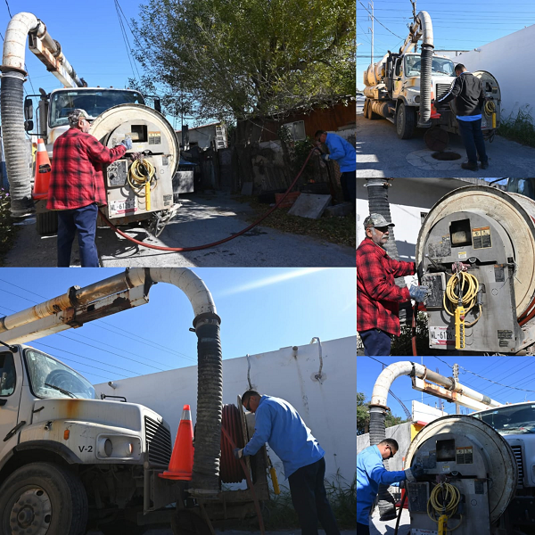 H. Matamoros, Tamaulipas.- Como parte del compromiso del alcalde de Matamoros, Beto Granados, con el fortalecimiento de los servicios públicos, el camión vactor d ella Junta de Aguas y Drenajes, recorre diariamente las colonias de la ciudad realizando labores permanentes de mantenimiento al drenaje sanitario.