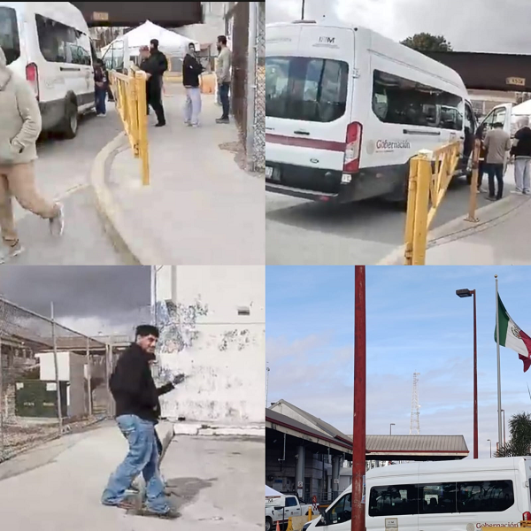 Desde temprano se encuentran vans del Instituto Nacional de Migración atentos a las oleadas de deportados que llegan por este medio.