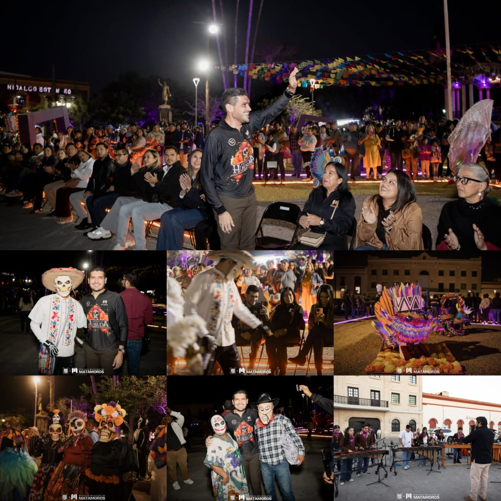 H. Matamoros, Tamaulipas.- Matamoros vivió una noche llena de color, música y tradición con la emotiva demostración de comparsas de Xantolo en la Plaza Principal, como parte del Festival de la Huesuda. Este evento, que reúne a familias y visitantes, reafirma el orgullo de la comunidad por mantener vivas las tradiciones que dan identidad y sentido a la celebración del Día de Muertos en la región.