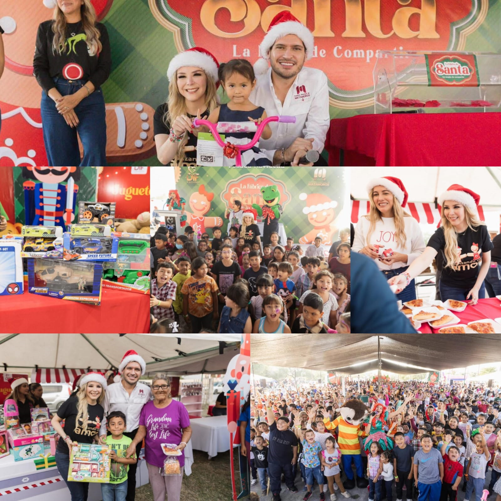 Con el firme compromiso de fortalecer la unión familiar y llevar un mensaje de amor y paz, el Sistema DIF Matamoros realizó con gran éxito las celebraciones navideñas con “La Fábrica de Santa: La Magia de Compartir”, beneficiando a más de 2,200 niñas y niños de las colonias Casa Blanca, Ejido Santa Adelaida, Mundo Nuevo, así como las canchas de la Colonia Independencia.