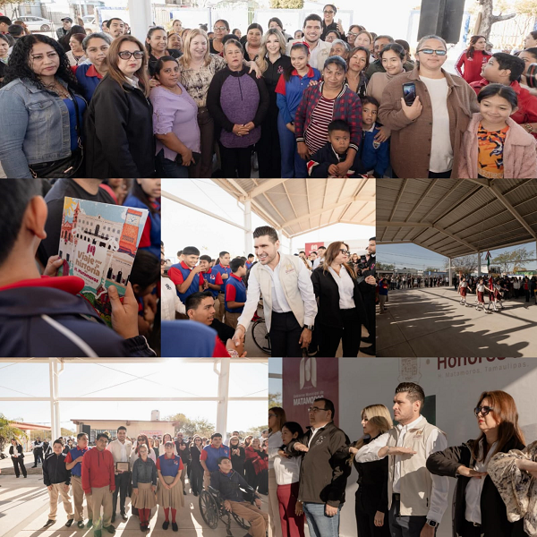 Por su parte, el alcalde Beto Granados resaltó que en su administración la educación es una prioridad, informando que con una inversión de casi 2 millones de pesos se hizo entrega de la techumbre y explanada, sumándose a más de 50 obras realizadas en planteles educativos de Matamoros. Subrayó que invertir en educación siempre será una decisión acertada y reafirmó su compromiso de continuar trabajando cerca de las escuelas para seguir transformando la ciudad y fortalecer el futuro de las y los estudiantes.