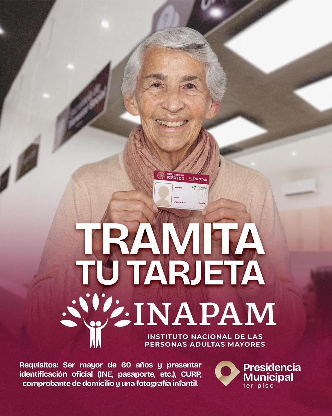 H. Matamoros, Tamaulipas.- Siguiendo las instrucciones del alcalde de Matamoros, Beto Granados, el Gobierno Municipal invita a las personas adultas mayores de 60 años a tramitar su Tarjeta INAPAM, un beneficio que permite acceder a descuentos y apoyos en diversos servicios y establecimientos.