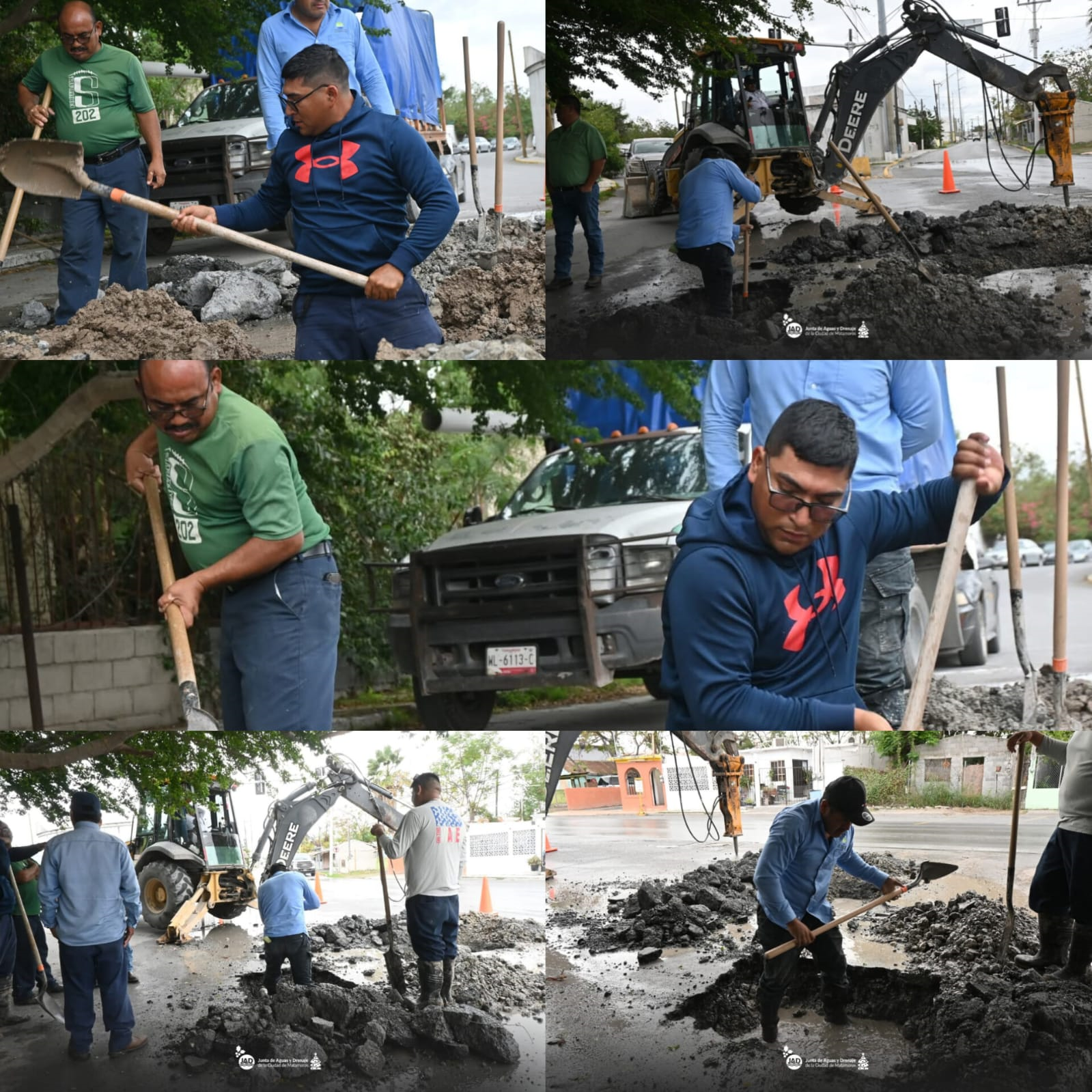 H. Matamoros, Tamaulipas.- El Gobierno que preside el alcalde Beto Granados, informa que se llevan a cabo trabajos de reparación de una fuga de agua potable en la intersección de las calles Azcárraga y Galeana, en la colonia Moderna.