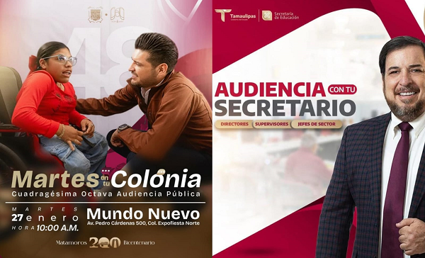 Como parte de esta jornada, el secretario de Educación en Tamaulipas, Miguel Ángel Valdez García, llevará a cabo audiencias con directoras y directores, supervisoras y supervisores, así como jefas y jefes de sector, en un horario de 10:00 de la mañana a 1:00 de la tarde, fortaleciendo el diálogo con el sector educativo.
