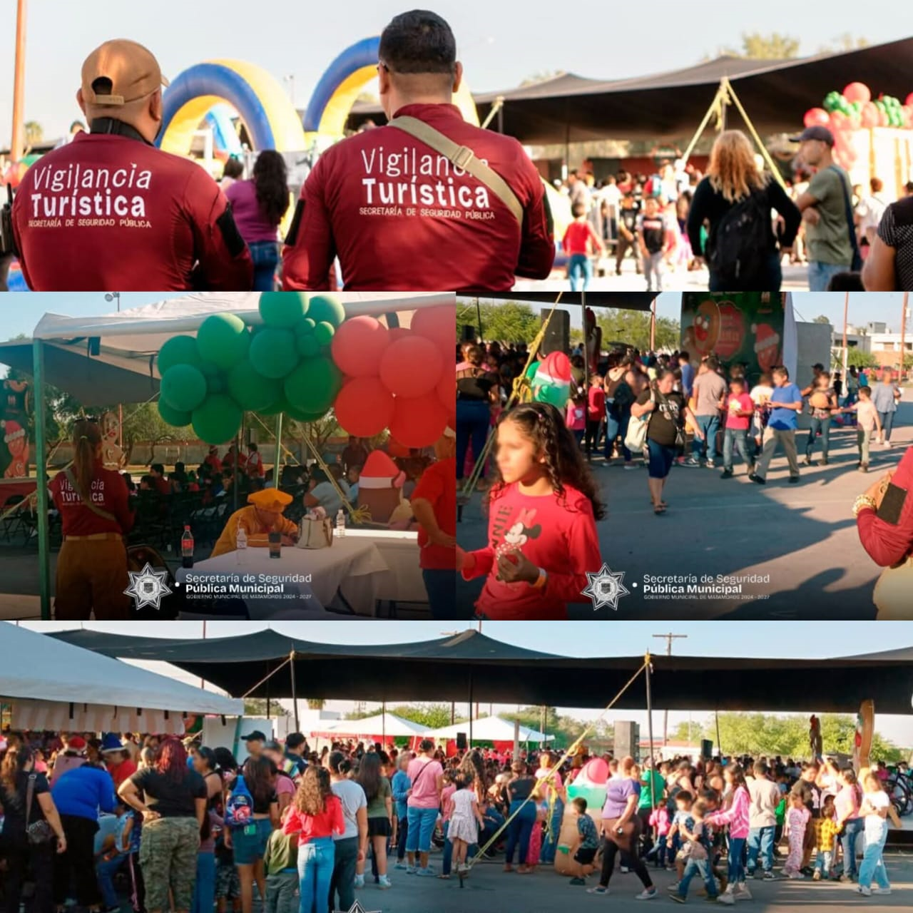 Matamoros, Tam.- El Gobierno de Beto Granados, a través de elementos de Vigilancia Turística, estuvo presente en la Mega Posada DIF Matamoros realizada en la colonia Independencia, donde garantizó la seguridad y tranquilidad de las familias que se dieron cita para disfrutar de esta celebración navideña.