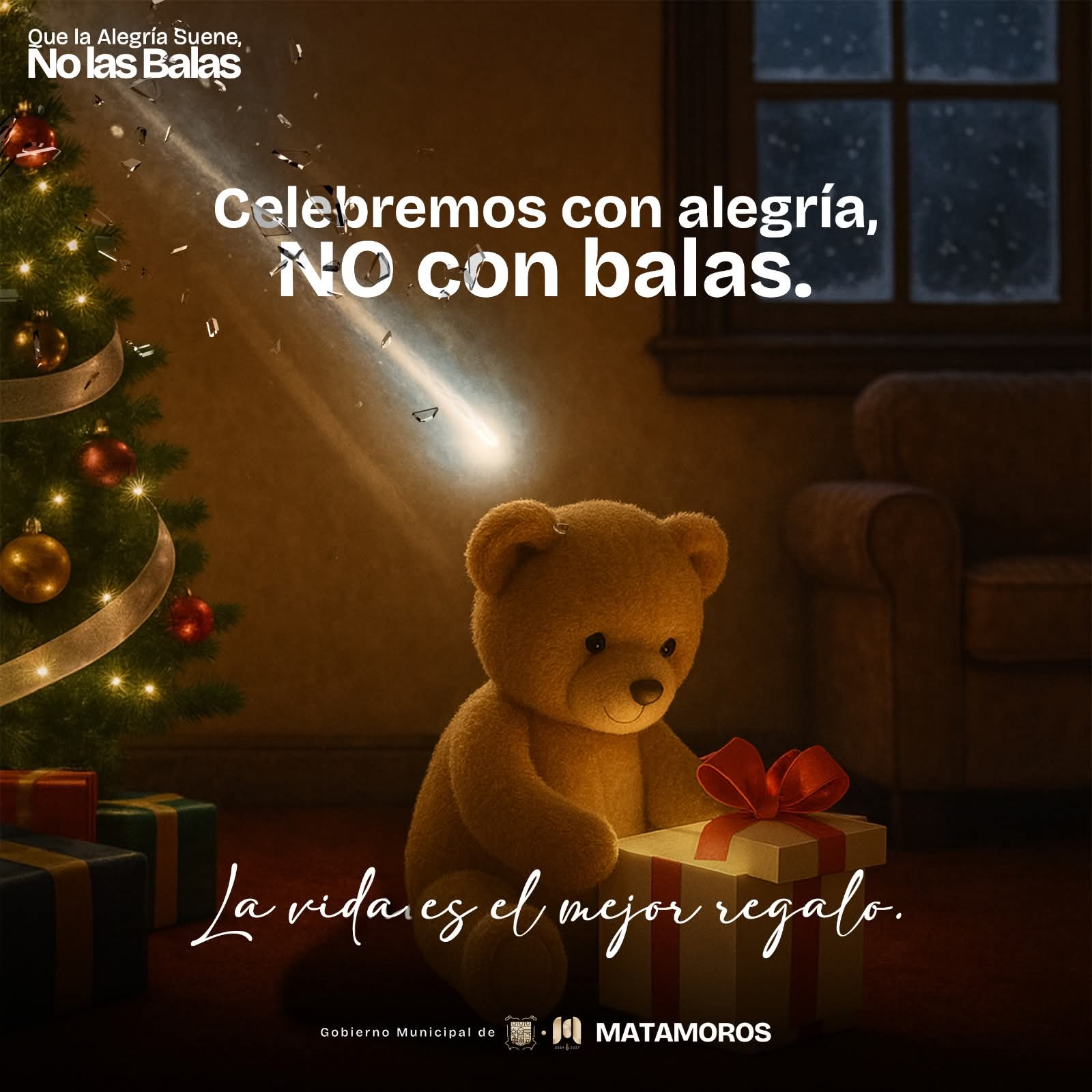 El mensaje destaca que un solo acto irresponsable puede arrebatar lo más valioso que se tiene: la vida. Por ello, el gobierno municipal exhorta a la población a celebrar con respeto, conciencia y responsabilidad, fomentando entornos seguros donde prevalezcan la paz y la convivencia familiar, porque solo así Matamoros avanza.