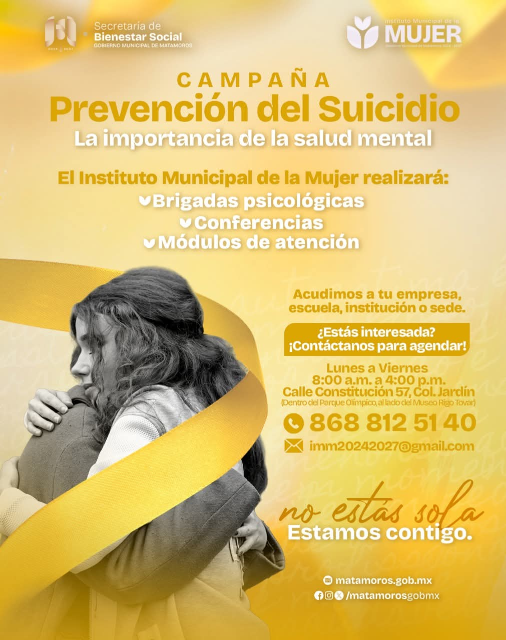 A través del Instituto Municipal de la Mujer, se llevarán a cabo brigadas psicológicas, conferencias y módulos de atención, ofreciendo herramientas que contribuyan a la prevención del suicidio y al fortalecimiento del cuidado emocional. Estas acciones pueden trasladarse a escuelas, empresas e instituciones, generando un contacto cercano con la comunidad.