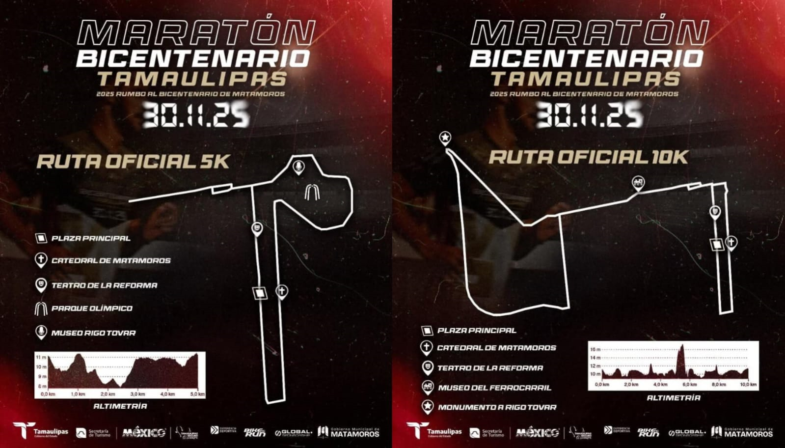 Las distancias de 5K y 10K recorrerán algunos de los puntos más emblemáticos del municipio, permitiendo a los corredores disfrutar de sitios representativos como la Plaza Principal, la Catedral de Matamoros, el Teatro de la Reforma, el Parque Olímpico, el Museo del Ferrocarril y el Monumento a Rigo Tovar. Cada tramo ha sido diseñado para ofrecer seguridad, historia y un ambiente familiar.