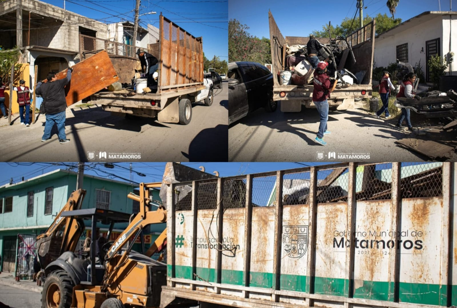 Matamoros, Tam.– La colonia Tecnológico se llenó de acción con la Jornada de Descacharrización organizada por el Gobierno Municipal que encabeza Beto Granados, donde camiones recolectores y personal de Bienestar Social junto a las y los vecinos para retirar muebles viejos, llantas y objetos en desuso que representaban un riesgo para la salud pública.