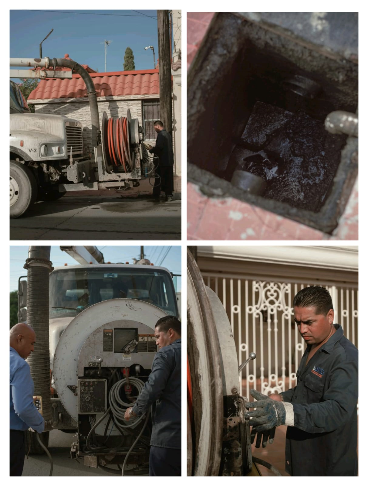 El camión vactor trabaja todos los días para reducir los niveles de agua en las líneas de drenaje y prevenir taponamientos. En esta ocasión, las cuadrillas acudieron al Fraccionamiento Victoria, donde realizaron labores de limpieza y desazolve en diversos registros del área.