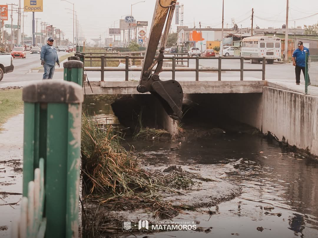 H. Matamoros, Tamaulipas.- El Gobierno de Matamoros, presidido por Beto Granados, informó que se está llevando a cabo la limpieza del canal ubicado en la Av. del Niño. En estos trabajos, se están retirando desechos y material que obstruye el paso del agua, con el objetivo de mejorar el flujo en la zona y evitar acumulaciones que puedan generar problemas de salud o afectaciones viales.