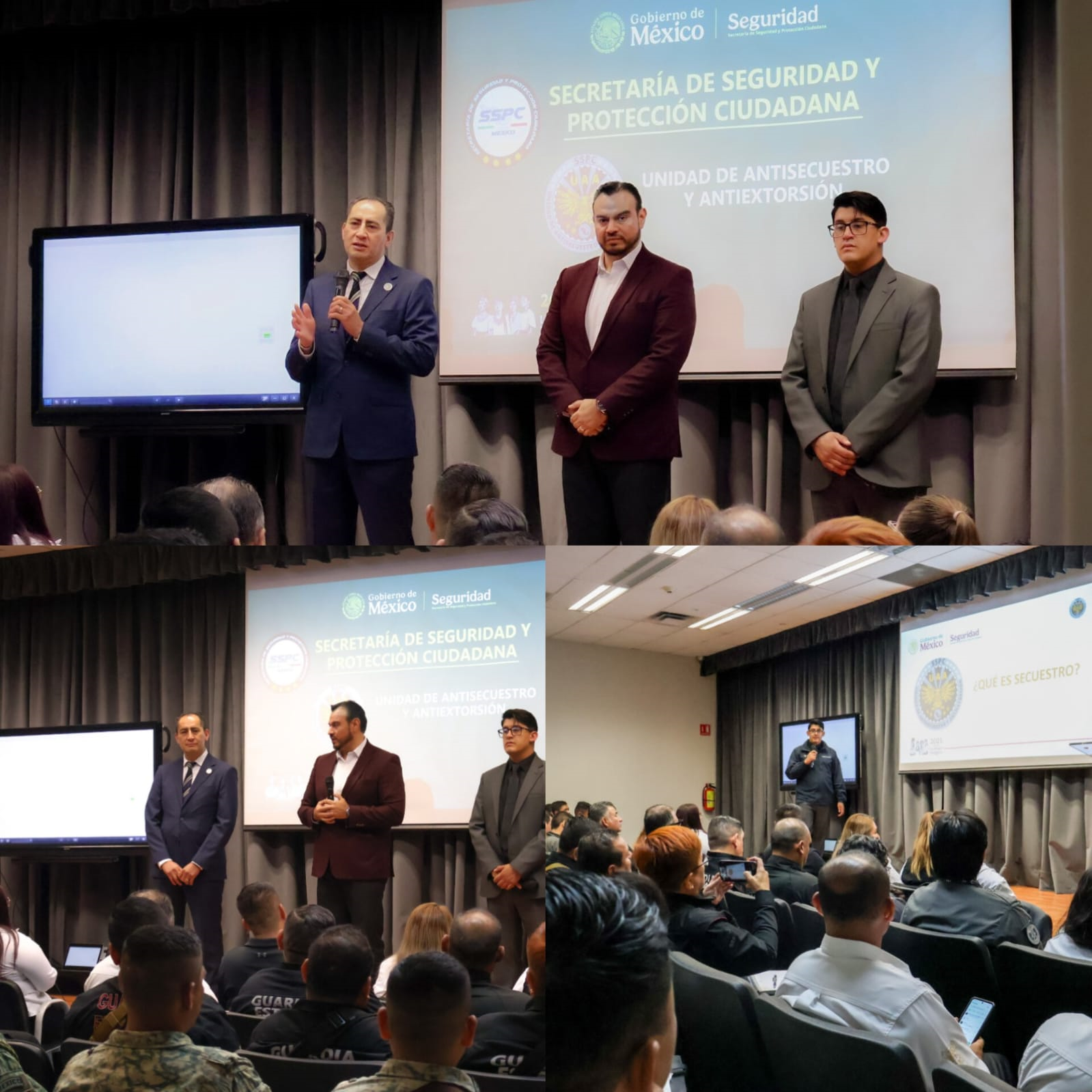 La capacitación es impartida por el oficial Miguel Ángel Alarcón Hernández, adscrito a la Unidad de Antisecuestro y Antiextorsión de la Secretaría de Seguridad y Protección Ciudadana (SSPC) y el agente investigador Carlos Roberto Medina Palma, quienes compartieron conocimientos especializados para fortalecer la capacidad operativa identificando las diversas modalidades de extorsión y de respuesta ante situaciones de crisis generadas por el delito de extorsión.