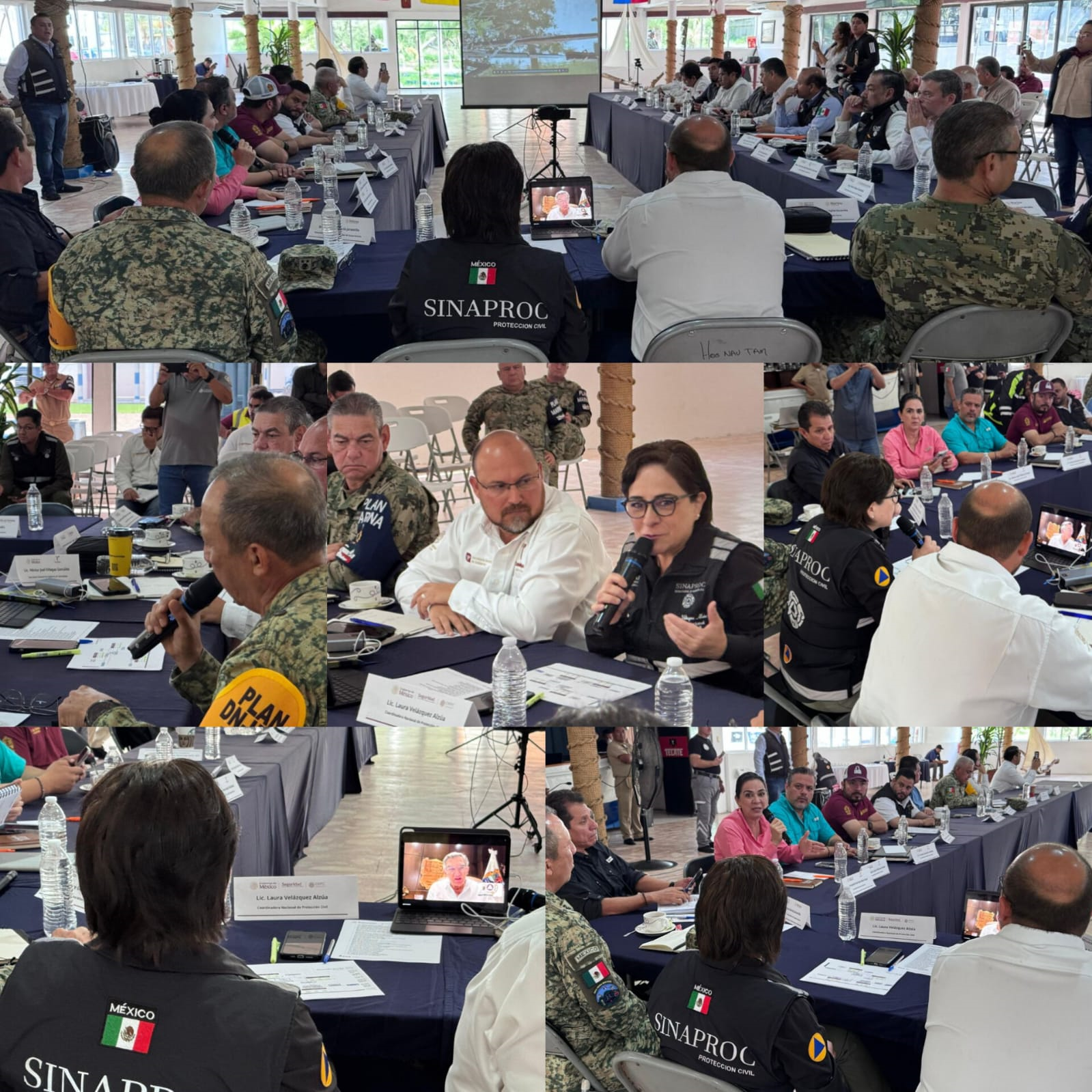 Por su parte, Laura Velázquez Alzúa, coordinadora Nacional de Protección Civil, informó que toda la atención del trabajo coordinado que realizan autoridades de los tres órdenes de gobierno es para atender a la población, garantizarle su seguridad y ayudarlos para que puedan trasladarse a los refugios temporales.