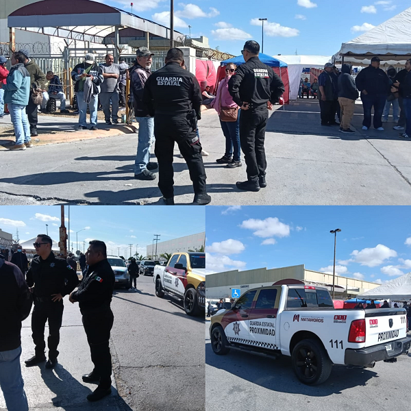 H. Matamoros, Tamaulipas.- Elementos de la Policía de Proximidad reforzaron la vigilancia en la empresa “Cardone”, ubicada en la zona industrial de Matamoros, como parte de las acciones permanentes de prevención del delito que se realizan en el municipio para fortalecer la seguridad en los centros de trabajo.